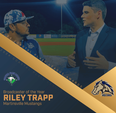 In 2024, I joined the Martinsville Mustangs in the prestigious Coastal Plain League as the team’s Broadcaster and Media Relations Coordinator. Throughout two seasons, I was on the air for 95 games, both at home on FloSports and on the road via Mustangs Radio. I was honored as the CPL's 2024 Broadcaster of the Year–the first time a Mustang broadcaster received this recognition [See Here]. During my second season, I advanced into the role of Broadcast Director and led our crew en route to the CPL's 2025 Broadcast Stream of the Year [See Here].